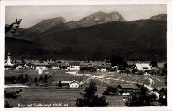 Ak Krün in Oberbayern, Gesamtansicht mit Krottenkopf