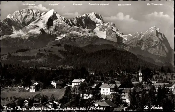 Ak Krün in Oberbayern, Ortsansicht, Bayerische Alpen, Zugspitzgruppe
