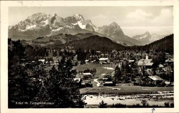 Ak Krün in Oberbayern, Panorama, Zugspitzmassiv