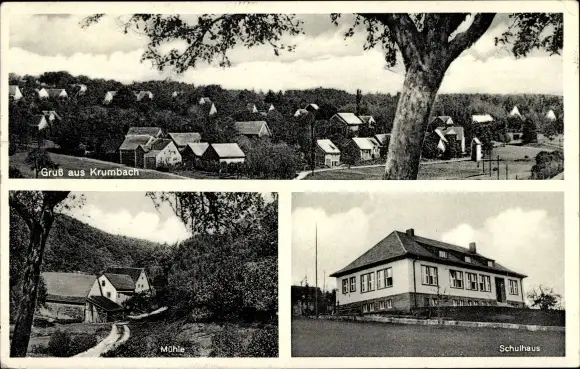 Ak Krumbach Limbach, Mühle, Schulhaus, Panorama