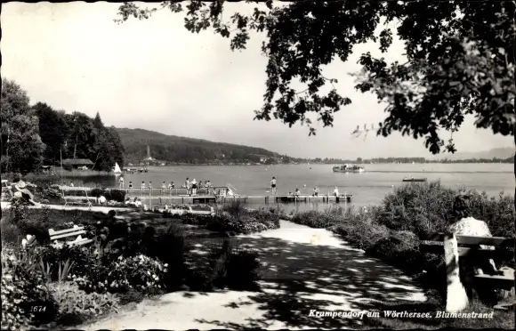 Ak Krumpendorf am Wörthersee Kärnten, Blumenstrand