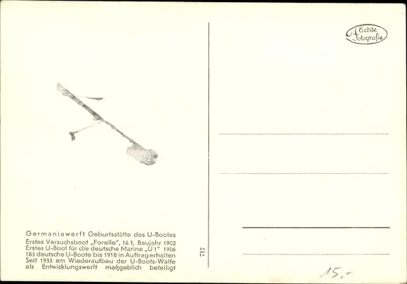 Ak Krupp Germaniawerft Kiel, Erstes Versuchsboot Forelle, U Boot, Baujahr 1902