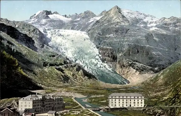 Ak Kt Wallis Schweiz, Rhonegletscher, Hotel Gletsch