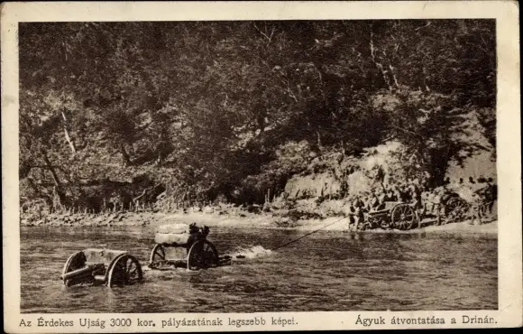Ak KuK Armee, Feldhaubitzen Batterie bei einer Flussdurchquerung, I WK