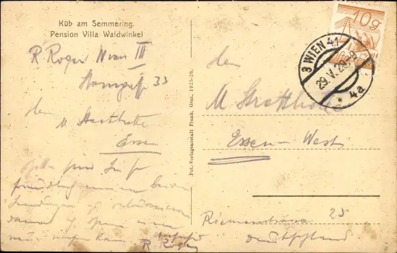 Ak Küb am Semmering Payerbach in Niederösterreich, Pension Villa Waldwinkel