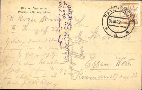 Ak Küb am Semmering Payerbach in Niederösterreich, Pension Villa Waldwinkel