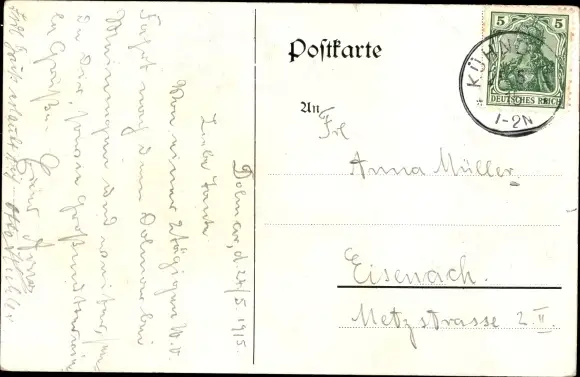 Zustand, siehe Scan, gelaufen, 1915 - ca 14 cm X 9 cm