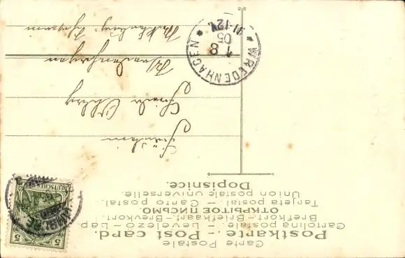 Zustand, siehe Scan, gelaufen, 1905 - ca 3 cm X 5 cm