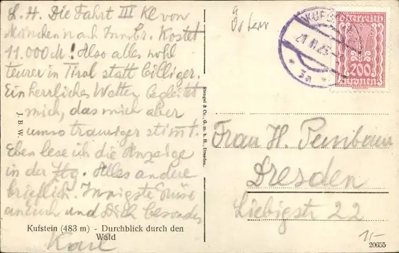Zustand siehe Scan, gelaufen, 1923 - ca 14 cm X 9 cm