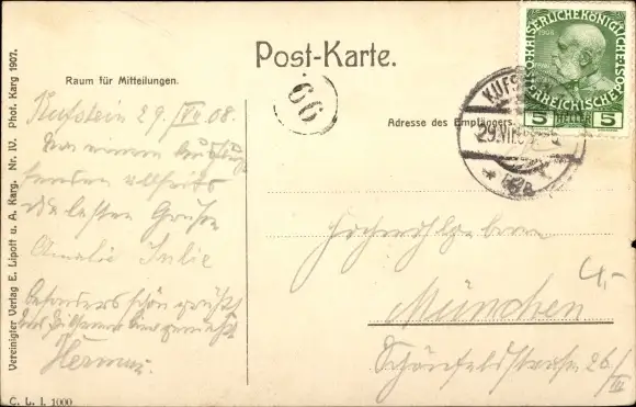 Zustand, siehe Scan, gelaufen, 1908 - ca 14 cm X 9 cm