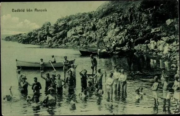 Ak Kullen Schweden, Ransvik, Badende an der Küste