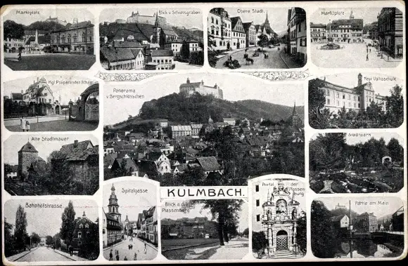 Ak Kulmbach in Oberfranken, Bergschlösschen, Burgportal, Spitalgasse, Schule, Stadtmauer