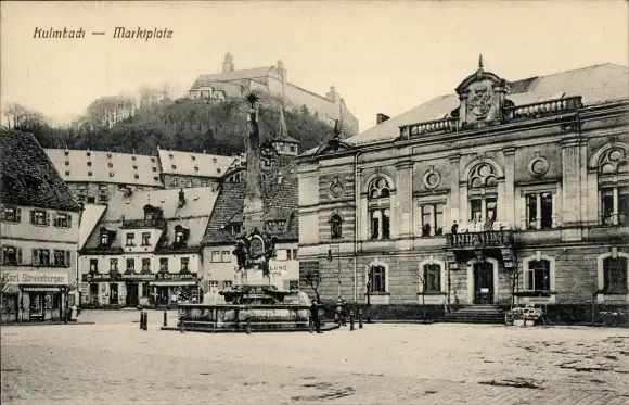 Ak Kulmbach in Oberfranken, Marktplatz, Denkmal, Geschäfte