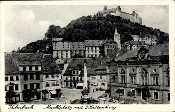 Ak Kulmbach in Oberfranken, Marktplatz, Plassenburg