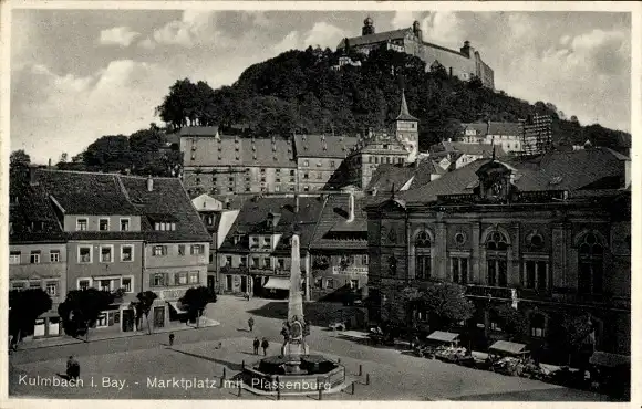 Ak Kulmbach in Oberfranken, Marktplatz, Plassenburg