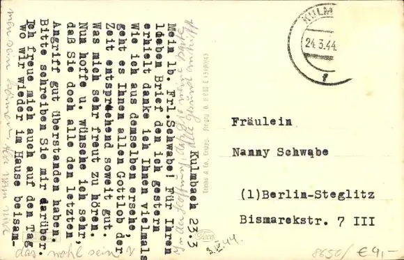 Zustand, siehe Scan, gelaufen, 1944 - ca 14 cm X 9 cm