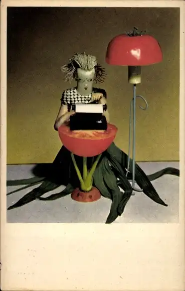 Ak Kunst aus Gemüse mit Schreibmaschiene