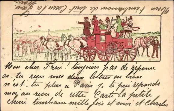 Ansichtskarte, Postkarte, Kutsche, Pferdegespann, Droschke, chariot, carro