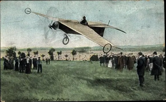 Ak L'Aeroplane Esnault Pelterie, Flugpionier, Zuschauer, Propellermaschine