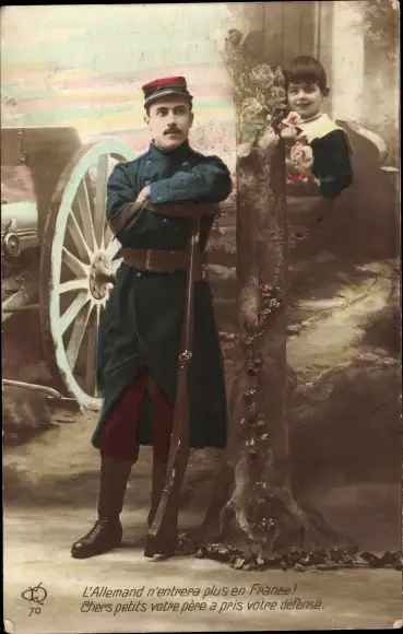 Ak L'Allemand n'entrera plus en France, französischer Soldat in Uniform, Junge