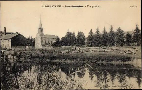 Ak L'Argonne Meuse, Vue générale, Eglise