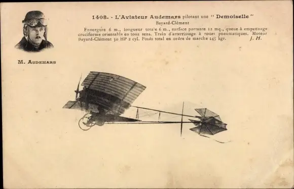 Ak L'Aviateur Audemars pilotant une Demoiselle, Flugzeug, Flugpionier