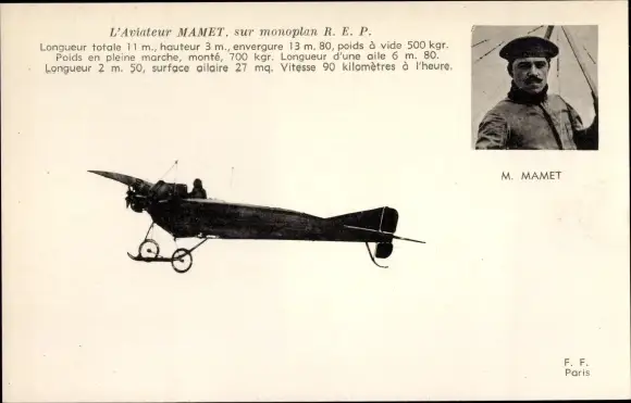 Ak L'Aviateur Mamet, Monoplan REP, Pilot, Flugpionier