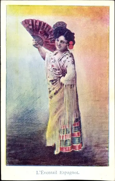 Ak L'Eventail Espagnol, Frau in spanischer Tracht mit Fächer