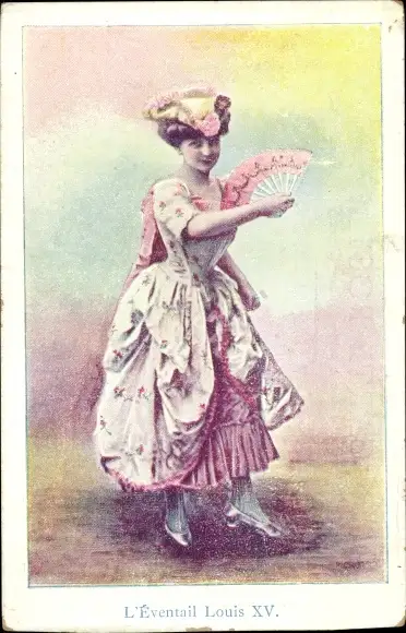 Ak L'Eventail Louis XV, elegante Dame mit Fächer