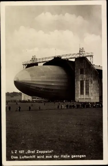 Ak LZ 127, Graf Zeppelin, Das Luftschiff wird aus der Halle gezogen