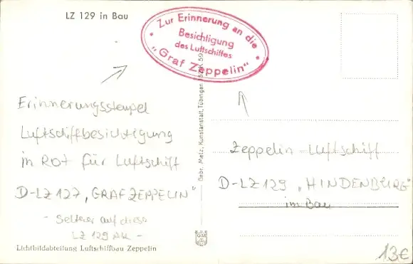 Ansichtskarte, Postkarte, Hindenburg, Luftschiff, Zeppelin, Zeppeline, Luftschiffe