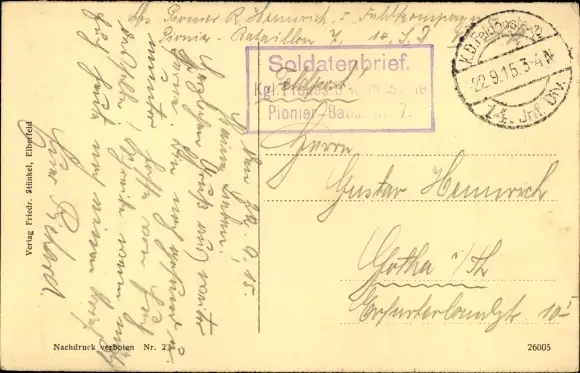 Zustand, siehe Scan, gelaufen, 1915 - ca 14 cm X 9 cm