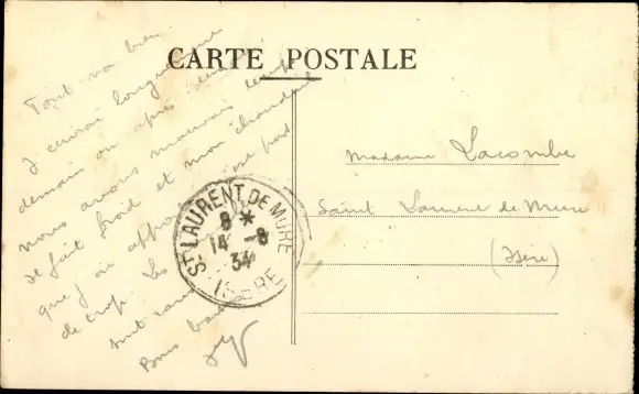 Zustand, siehe Scan, gelaufen, 1934 - ca 14 cm X 8 cm
