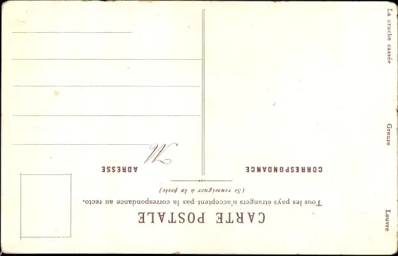 Ak La Cruche Cassee, Frau in weißem Kleid, Portrait
