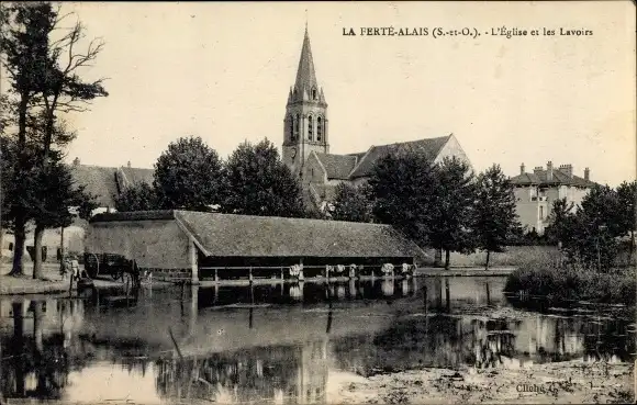 Ak La Ferté Alais Essonne, L'Eglise et les Lavoirs