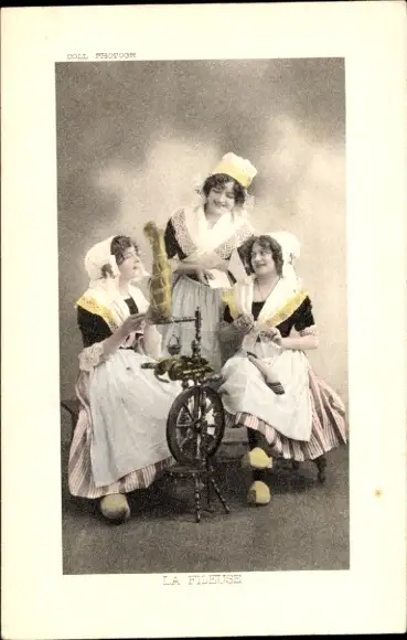 Ak La Fileuse, Spinnerinnen in belgischer Tracht