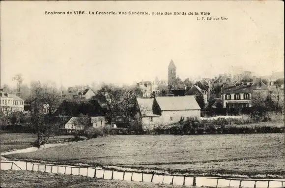 Ak La Graverie Calvados, Vue Generale, prise des Bords de la Vire
