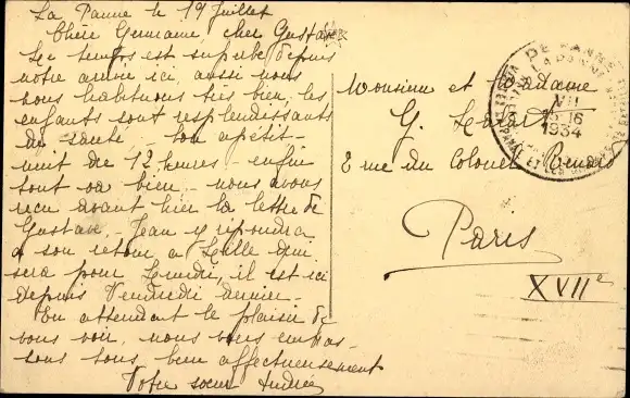 Zustand, siehe Scan, gelaufen, 1934 - ca 14 cm X 9 cm