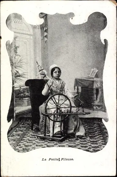 Ak La Petite Fileuse, Junge Frau beim Spinnen, Spinnrad