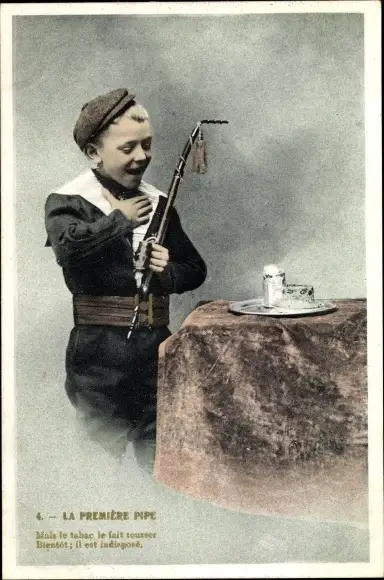 Ak La Premiere Pipe, Junge mit Stabpfeife