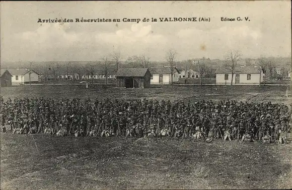 Ak La Valbonne Ain, Arrivée des Réservistes au Camp
