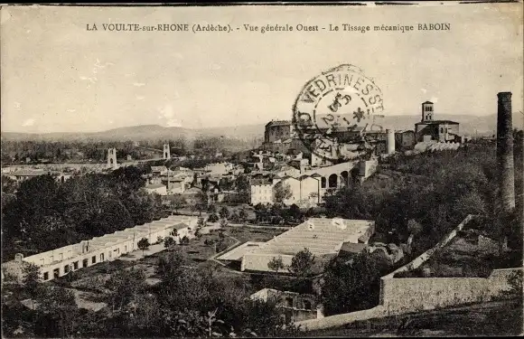 Ak La Voulte sur Rhone Ardeche, Vue générale Ouest, le Tissage mecanique Baboin