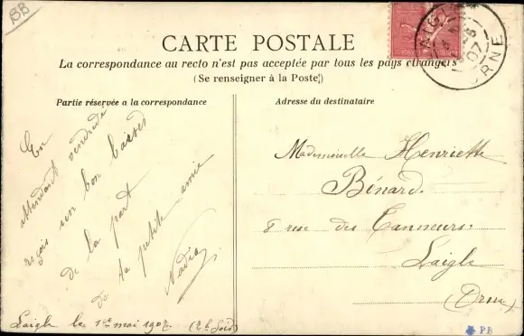 Zustand, siehe Scan, gelaufen, 1907 - ca 14 cm X 9 cm