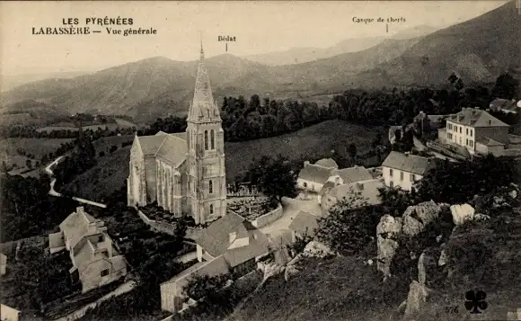 Ak Labassere Hautes-Pyrénées, Panorama, Kirche, Bedat, Casque