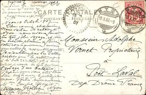 Zustand, siehe Scan, gelaufen, 1907 - ca 14 cm X 9 cm