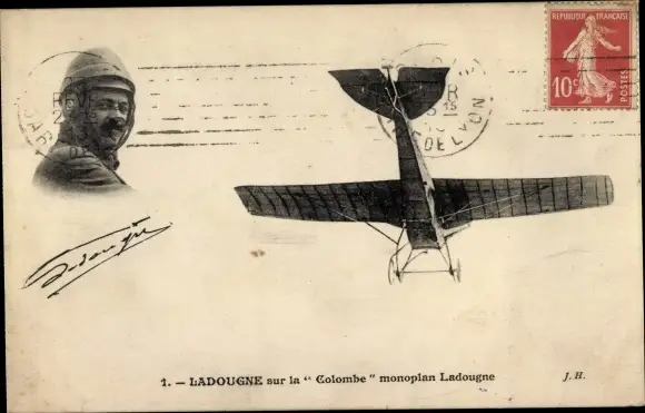 Ak Ladougne sur la Colombe, monoplan Ladougne, Flugpionier