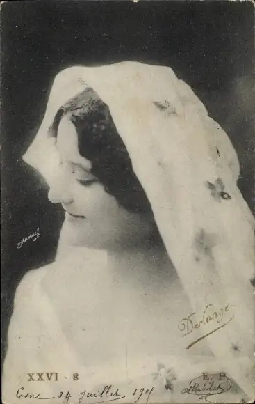 Ak Lächelnde Frau, Schleier, Porträt, Künstlerin