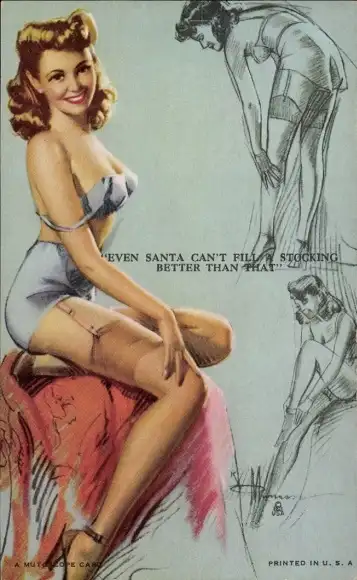 Ak Lächelnde Frau, Unterwäsche, Strümpfe
