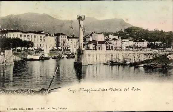 Ak Lago Maggiore Piemonte, Stadt, Hafen, Aussischtsturm