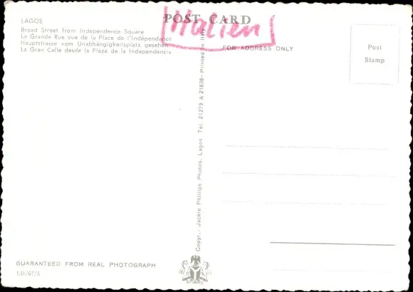Ak Lagos Nigeria, Broad Street, Independence Square, Straßenansicht